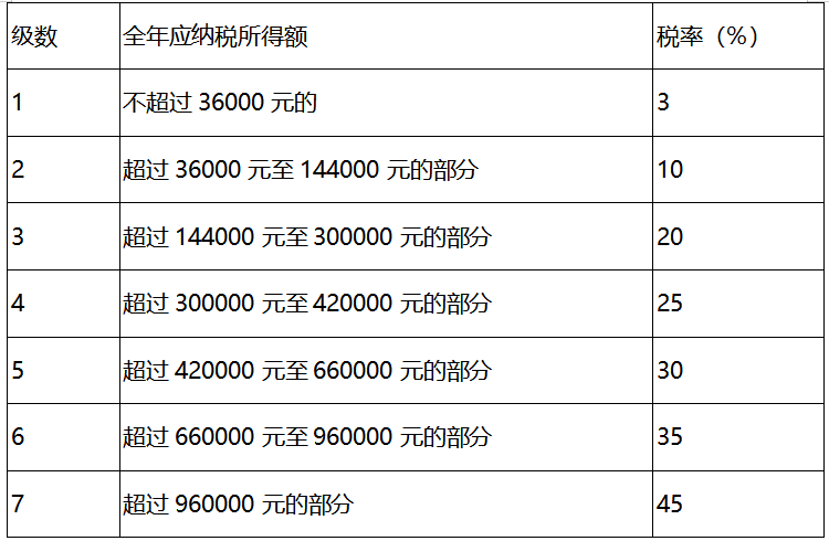 (注1:本表所称全年应纳税所得额是指依照本法第六条的规定,居民个人取得综合所得以每一纳税年度收入额减除费用六万元以及专项扣除、专项附加扣除和依法确定的其他扣除后的余额。