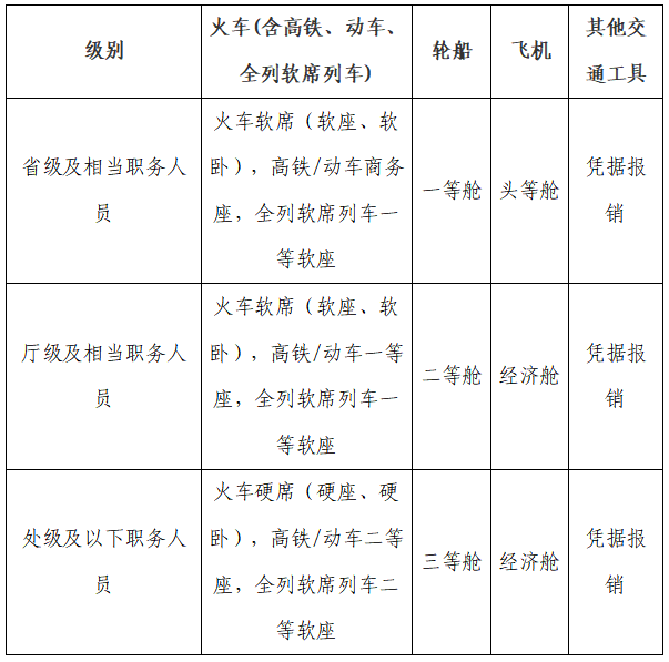 第七条 到出差目的地有多种交通工具可选择时,出差人员在不影响公务、确保安全的前提下,要按照规定等级优先选乘经济便捷的交通工具,出差结束后,凭票据实报销城市间交通费。