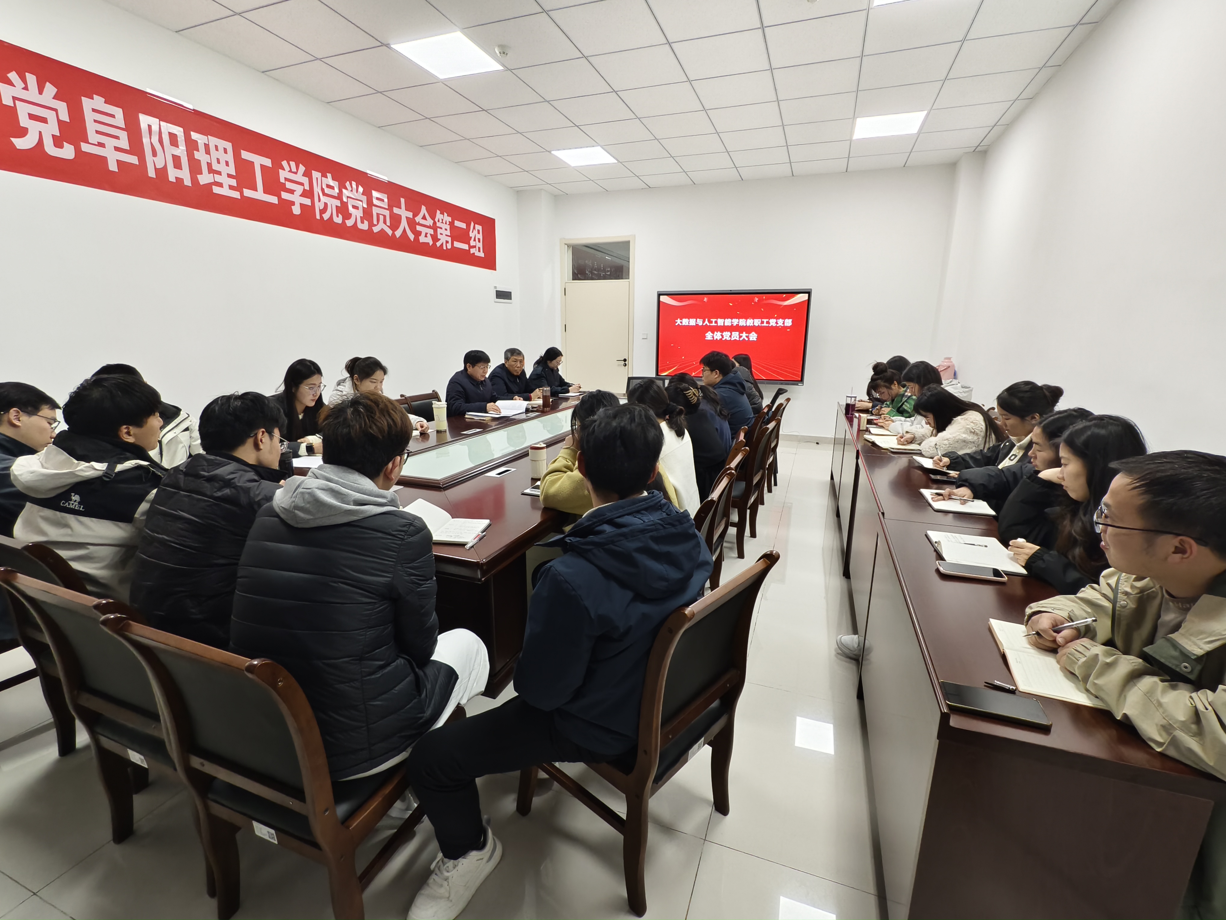 会上,支部书记李淮江同志首先传达了阜阳理工学院党委关于树立和践行正确政绩观学习教育的会议精神,带领全体党员深刻领会树立正确政绩观的核心要义与实践要求,引导党员干部以正确导向推动教育教学工作提质增效。随后,其传达了《关于召开 2025 年度基层党组织组织生活会和开展民主评议党员工作的通知》文件精神,对本次组织生活会的核心要求、流程安排和评议标准进行详细解读,为会议规范有序开展奠定基础。