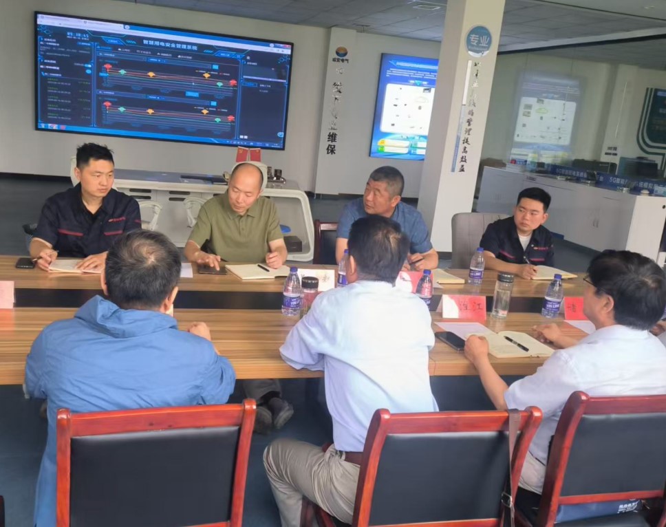 调研期间,周国祥一行参观了皖宏电气的电力数字化显示大屏,学院团队结合现场情况,对数据采集、算法模型研究等环节提出初步技术建议。