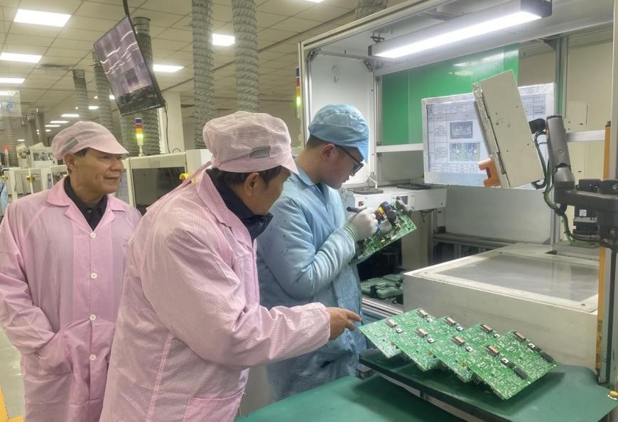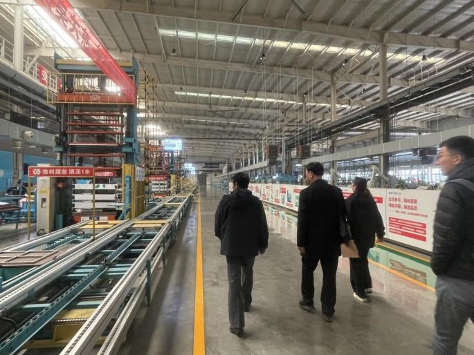 在奥克斯人力资源及技术部门负责人的陪同下,周院长一行首先乘坐观光车前往总装流水线区域。驻足观摩,仔细询问了生产流程、技术应用及对数字化管理人才的具体需求,对奥克斯的智能制造留下了深刻印象。
