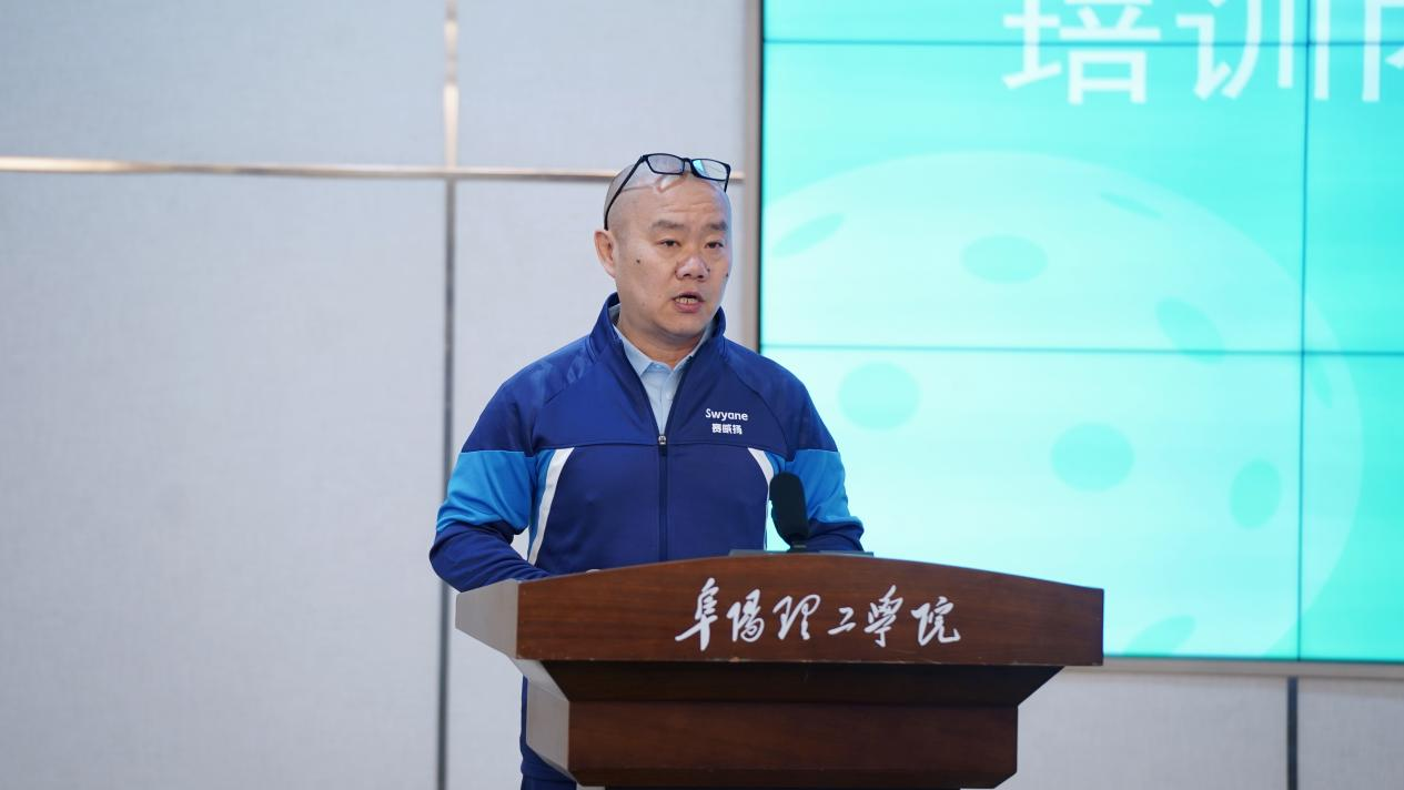 陈升代表阜阳市体育总会致辞时指出,阜阳理工学院获批全国匹克球教学点,既是对学校前期工作的充分肯定,也为其赋予了“承上启下、示范引领”的重要使命。他勉励全体学员珍惜学习机会,提升专业能力,发挥纽带作用,共同推动匹克球运动在阜阳的普及与发展。