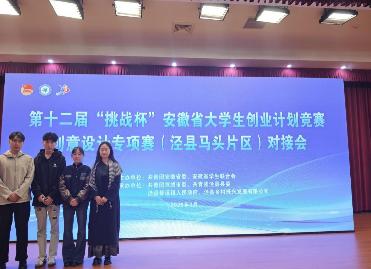 此次参会为我校备战“挑战杯”创意设计专项赛奠定了坚实基础,不仅让师生精准把握了赛事要求与地方实际需求的结合点,更搭建了校地合作的良好桥梁。下一步,我校团委将以此次对接会为契机,指导参赛团队深挖泾县马头片区文化内涵与生态优势,打造兼具创新性、落地性与社会效益的设计作品,以青年创意之力助力乡村振兴,在“挑战杯”竞赛的舞台上展现我校学子的青春风采与专业素养。