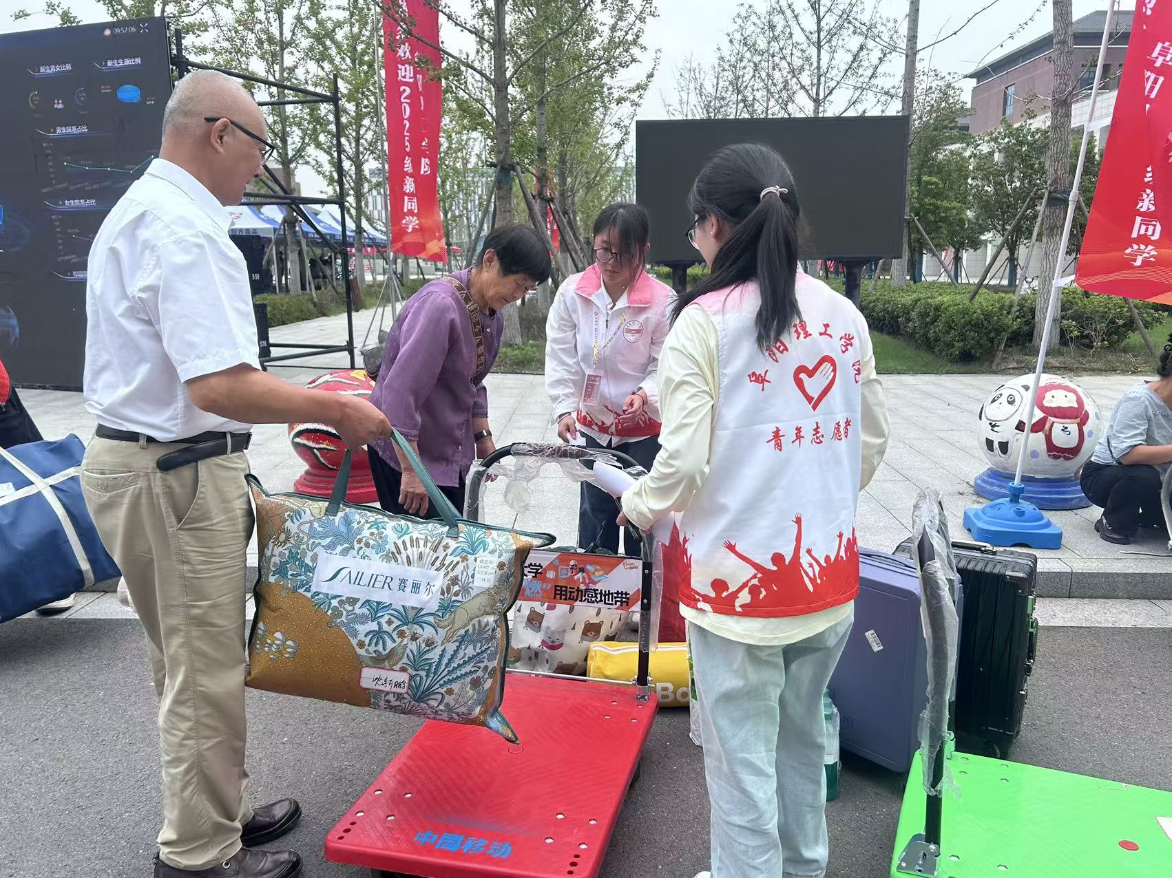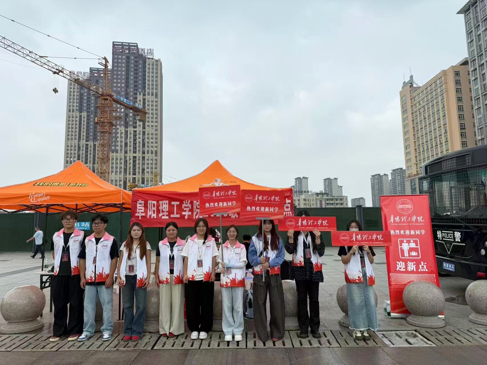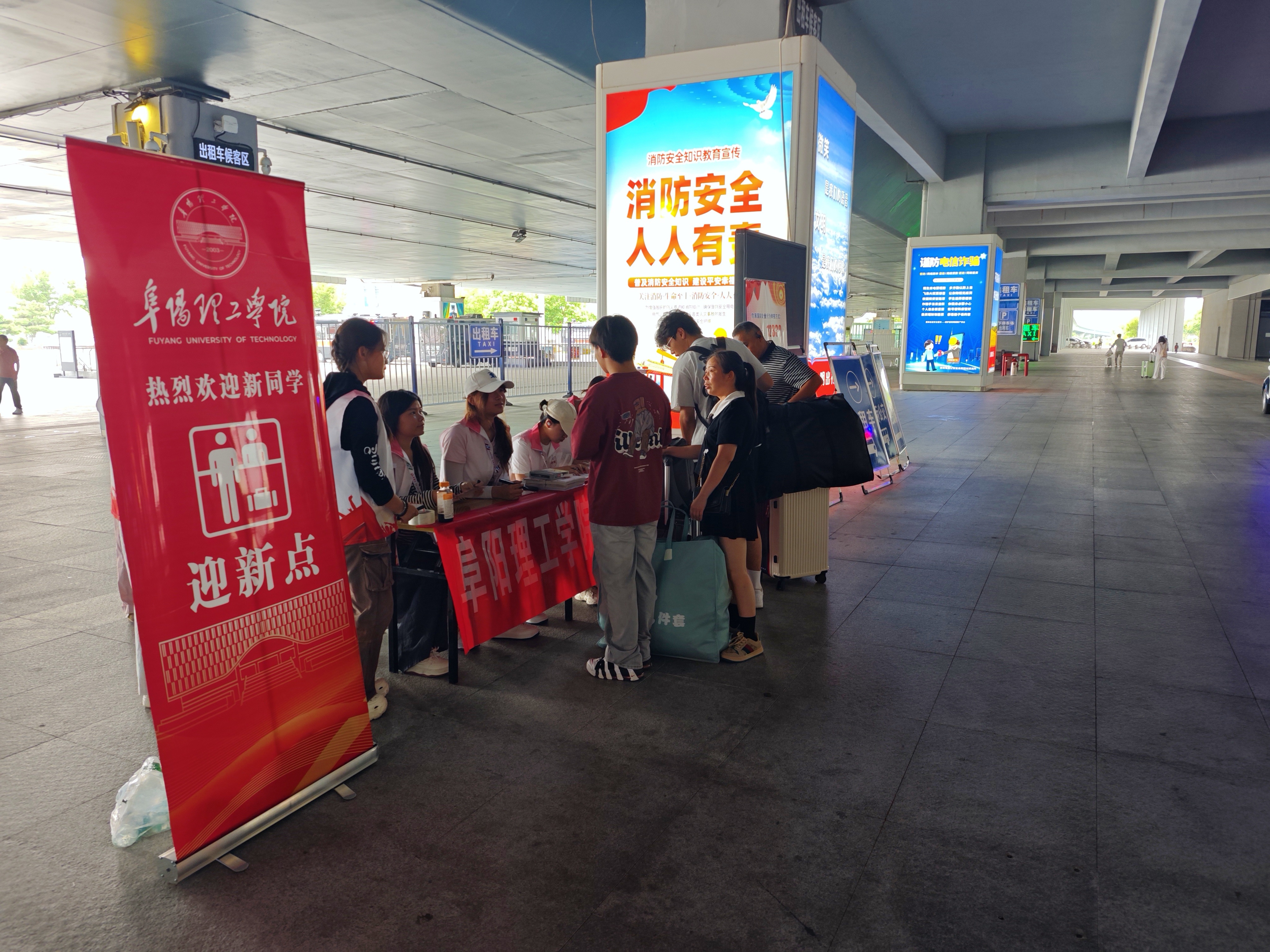 阜阳西站和阜阳站作为新生踏入阜阳的首站,志愿者们在此承担重要接站任务。他们提前抵达车站,手持醒目的接站牌,热情迎接来自全国各地的新生。从引导乘坐校车到协助搬运行李,志愿者们周到细致的服务让新生和家长们初到阜阳便感受到学校的关怀,有效缓解了他们的陌生感和紧张情绪。