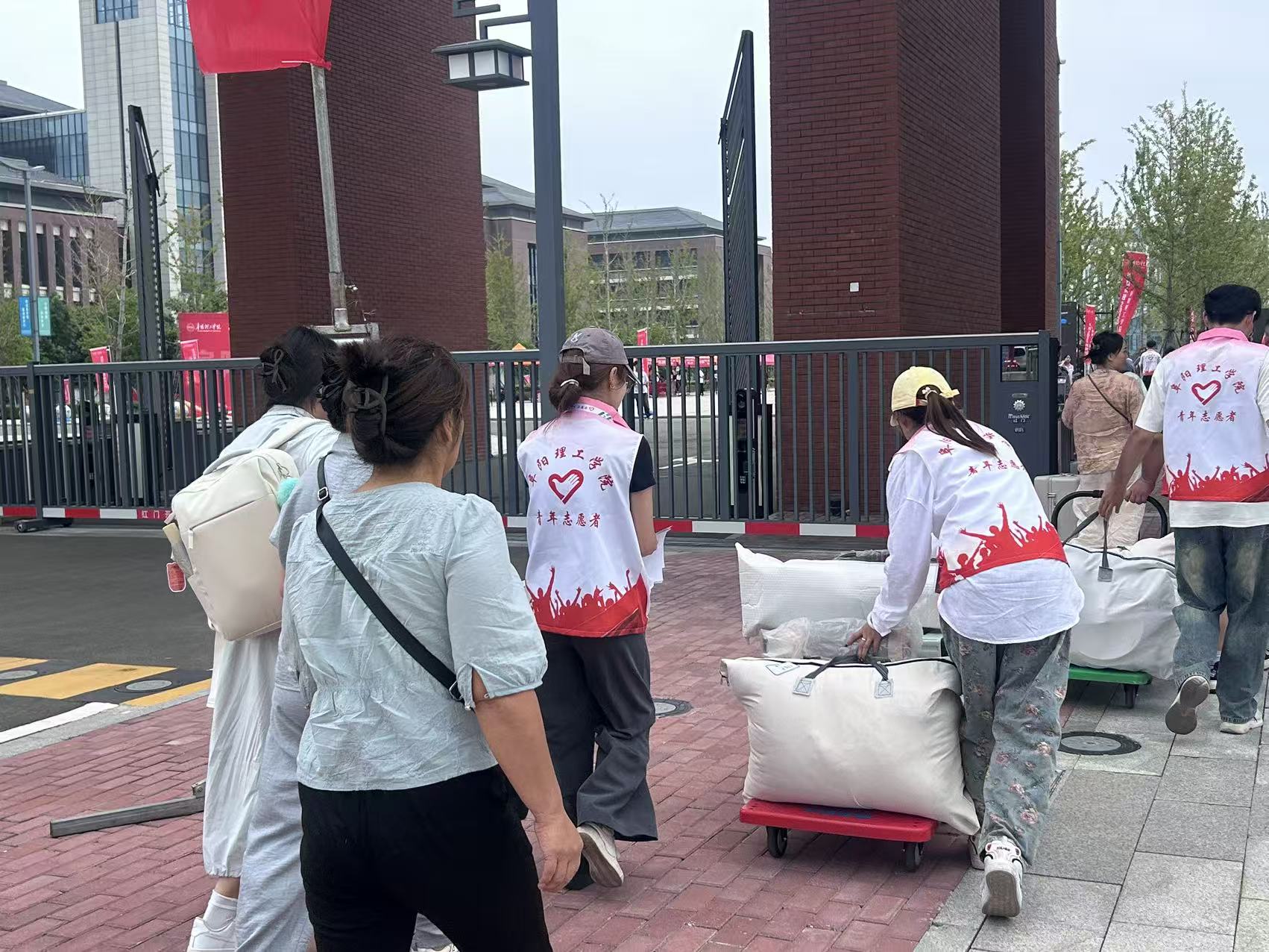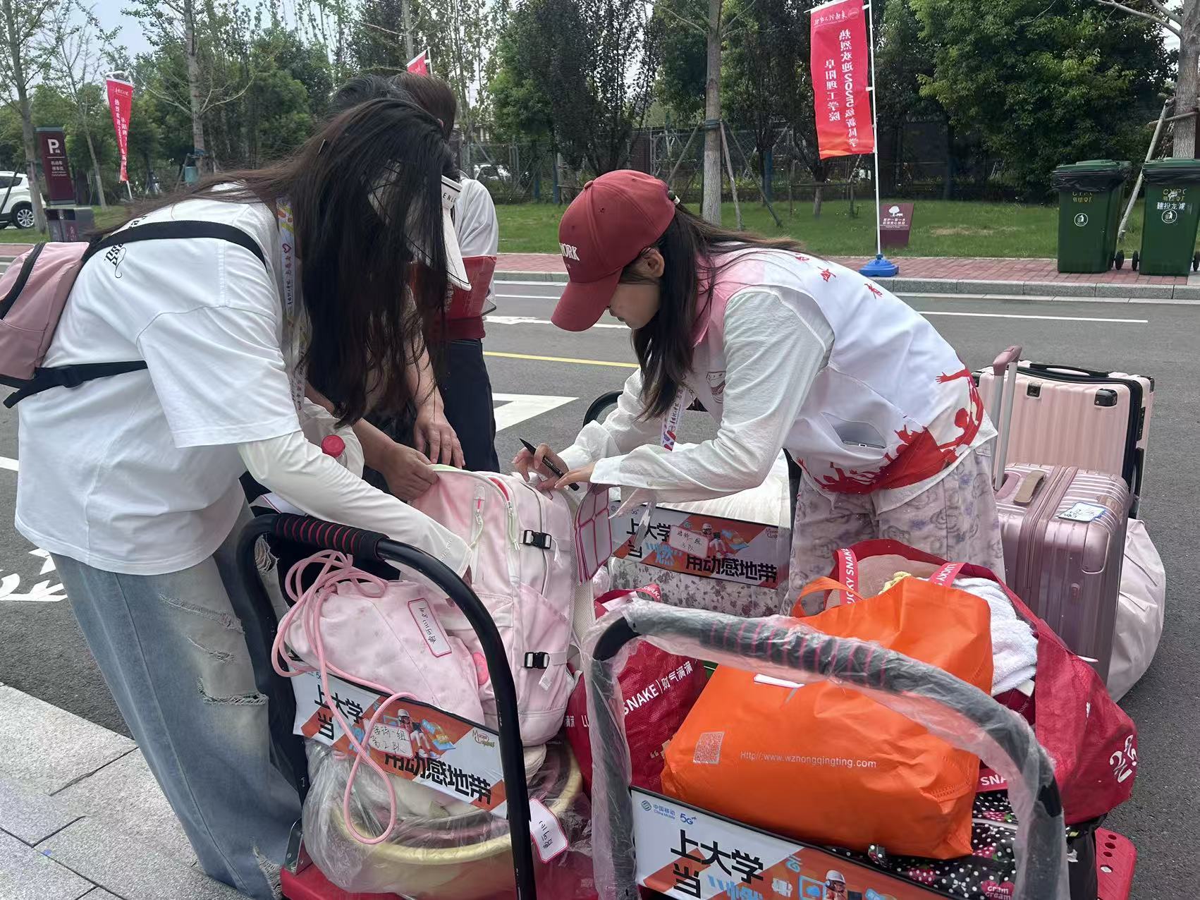 校内接待和报到辅助工作同样繁重琐碎,但志愿者们始终保持着耐心和细心。在校园入口、报到点、行李寄存处、休息点、宿舍区等各个服务点,他们为新生指引路线、解答疑问、协助办理手续、搬运行李,引导新生顺利完成入学流程。尽管烈日当空,汗水浸湿衣衫,志愿者们始终面带微笑,用热情感染每一位新生,让新生对即将开始的大学生活充满期待。
