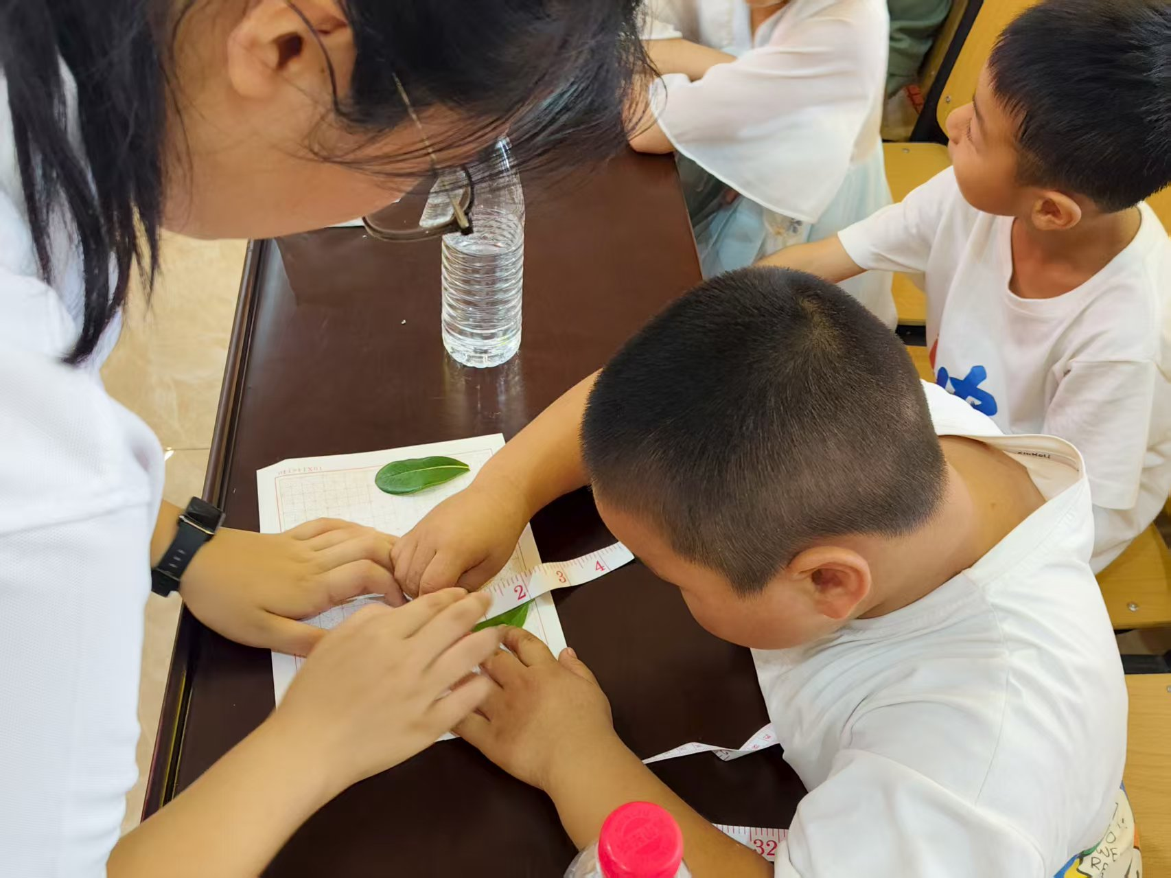 数学教学突破传统模式,开展“树叶周长大挑战”实践活动。孩子们手持软尺测量各类树叶边缘,用方格纸计算对比不同叶片的周长与面积关系。抽象的几何知识在自然观察中变得鲜活可触,让孩子们真切体会到数学就藏在大自然的细微之处。