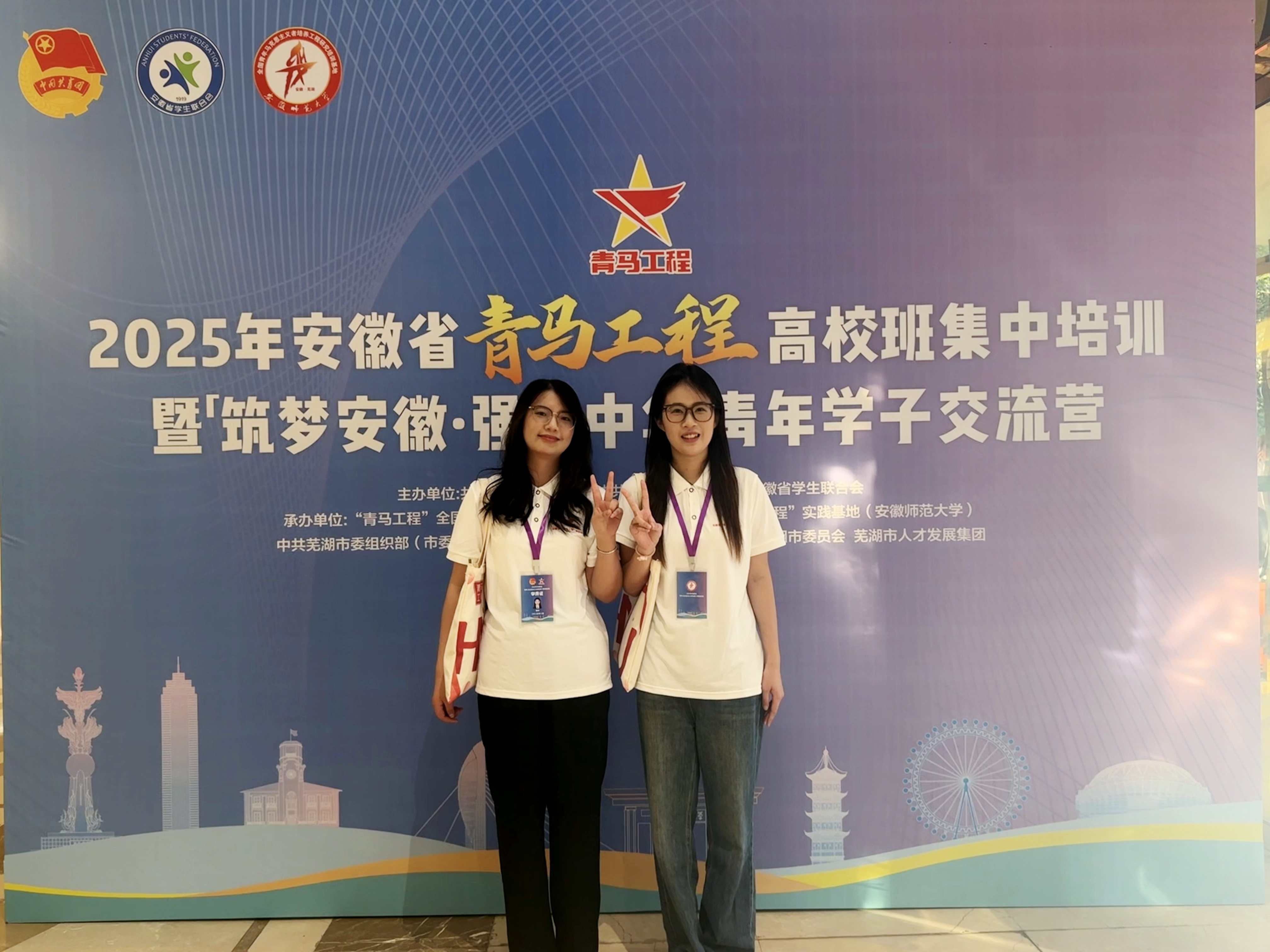8月27日,由共青团安徽省委、省委教育工委、省学联联合主办,安徽省“青马工程”教育实践基地(安徽师范大学)与芜湖市有关单位共同承办的 2025 年安徽省“青年马克思主义者培养工程”高校班暨“筑梦安徽·强我中华”青年学子交流营在芜湖正式开营。我校田玲、钟梦幽两位同学作为培训班学员,与来自全省119所高校的200名青年大学生骨干一同参加了为期数天的集中学习与实践锻炼。