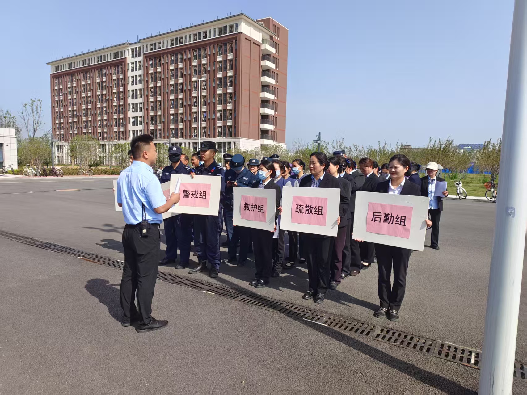 为进一步提升全校师生员工消防安全意识,筑牢校园安全防线,4月23日上午,学校在6号学生公寓组织开展消防安全知识培训及消防应急演练活动。颍州区消防大队张层层教官、后勤保卫处工作人员及200余名师生员工参加了演练活动。