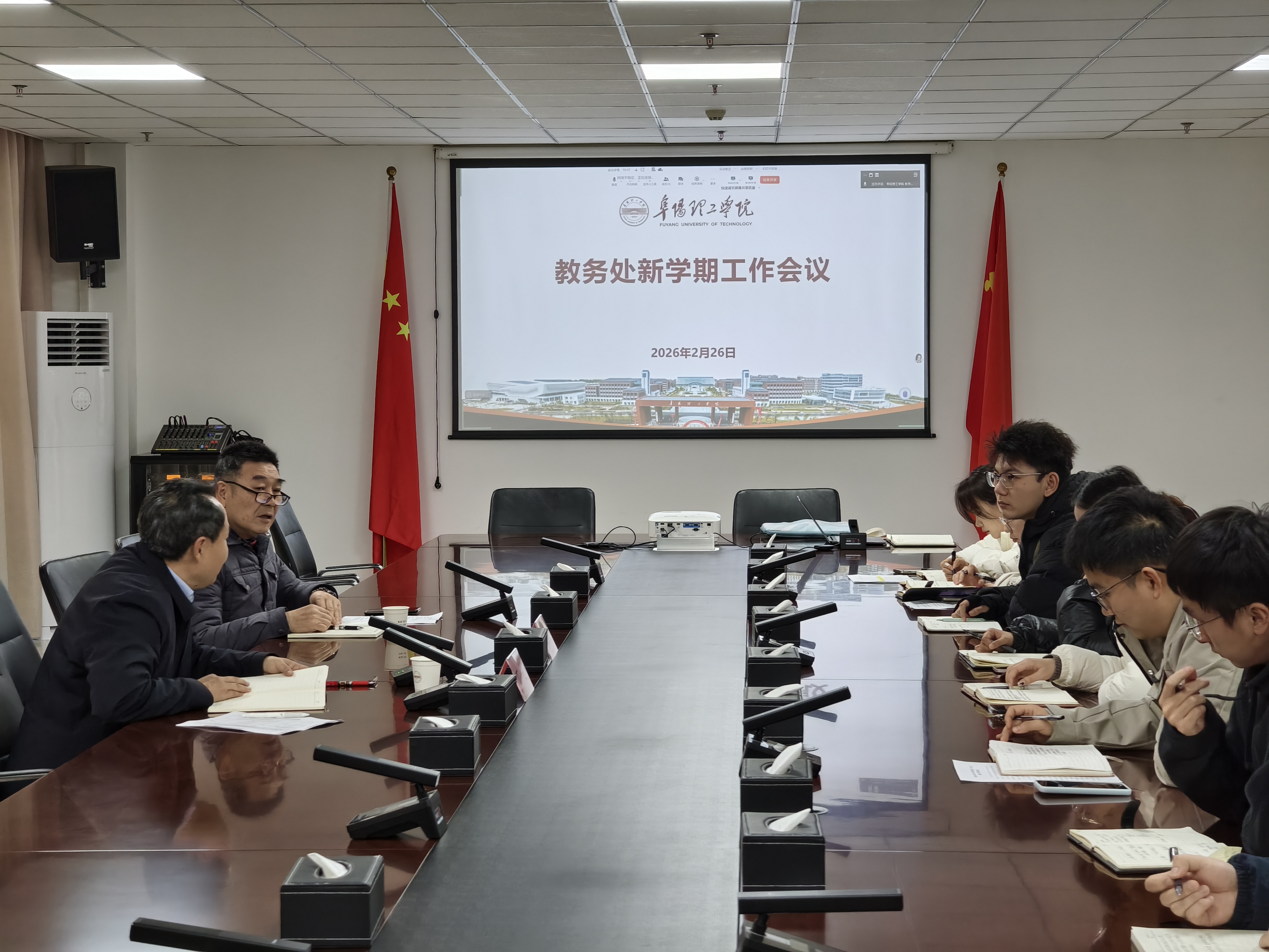 为统筹推进本学期教务管理各项工作,保障新学期正常教学运行,2 月 26 日上午 10:00,阜阳理工学院教务处新学期工作会议在后勤楼 5 楼会议室召开,副校长丁超、校长助理黄婕、教务处全体工作人员参加会议。
