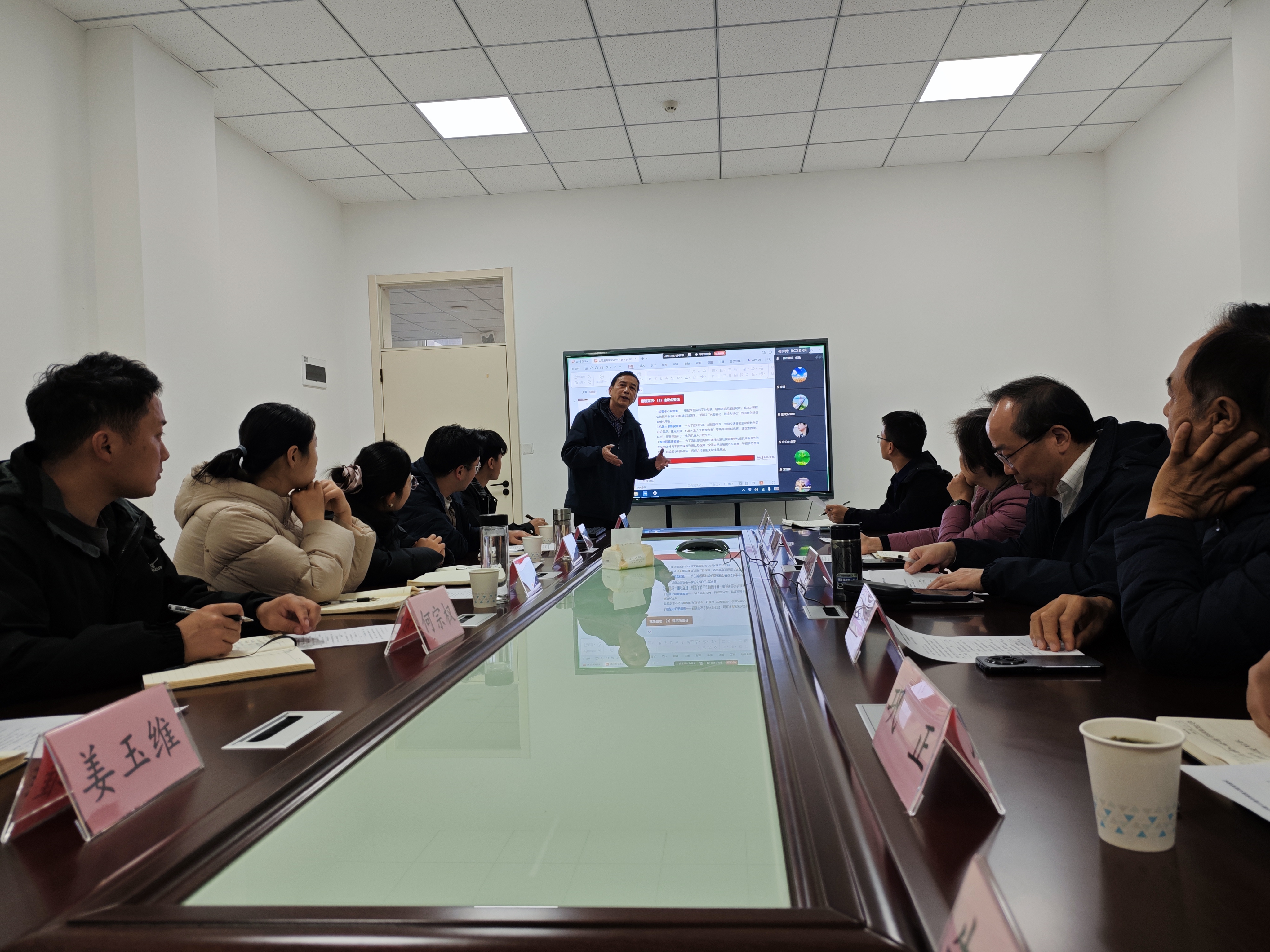 随后,我院实验室主任钟东教授通过PPT演示,从设备选型标准、空间功能布局、资金预算分配及预期建设成效等方面,全面汇报了实验室建设方案。他强调,方案编制过程中充分借鉴了国内高校同类实验室的成熟经验,紧密结合学院学科发展实际与人才培养需求,旨在实现资源优化配置与功能效用最大化。