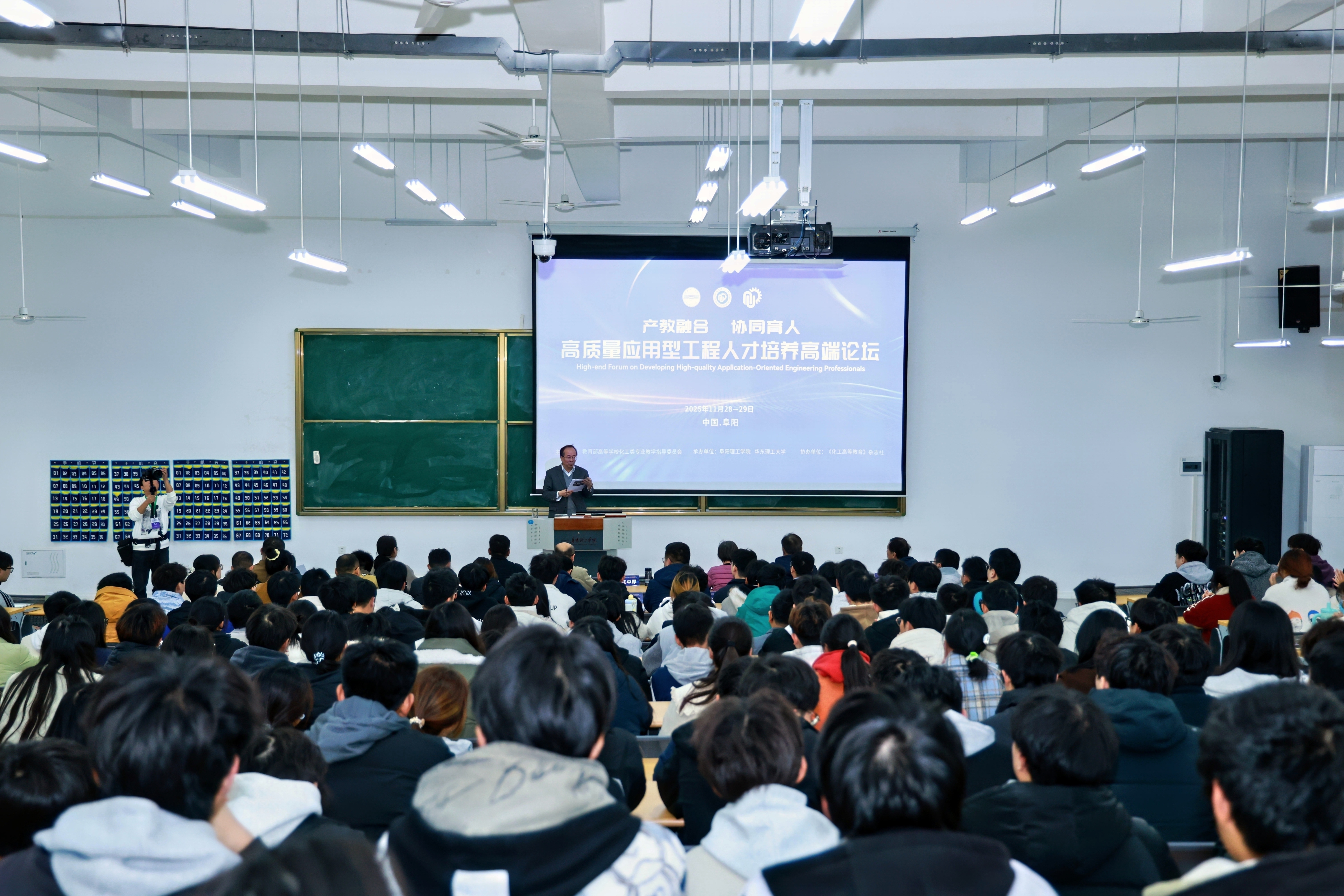 为搭建校企沟通桥梁,推动产学研深度融合,助力学科建设与学生实践能力提升,机械与汽车工程学院于2025年11月28日下午,在1号楼111阶梯教室成功举办高端论坛分会场会议。学院院长汪中厚主持本次会议,会议以“行业前沿技术与校企合作”为主题,特邀安徽省内四家知名企业嘉宾代表参会,学院教授、专任教师、辅导员、行政人员及近260名学生齐聚现场,围绕轻量化技术、低空工程、智能制造等热点议题展开深入交流。