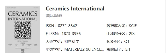 推荐理由:该刊是 Elsevier 旗下陶瓷材料领域老牌TOP刊,JCR Q1、中科院2区TOP,2024年影响因子5.8,自引率16.1%。聚焦结构/功能陶瓷全链条研究,年发文4966篇,审稿约1.9个月,国人友好,认可度高,投稿优选。