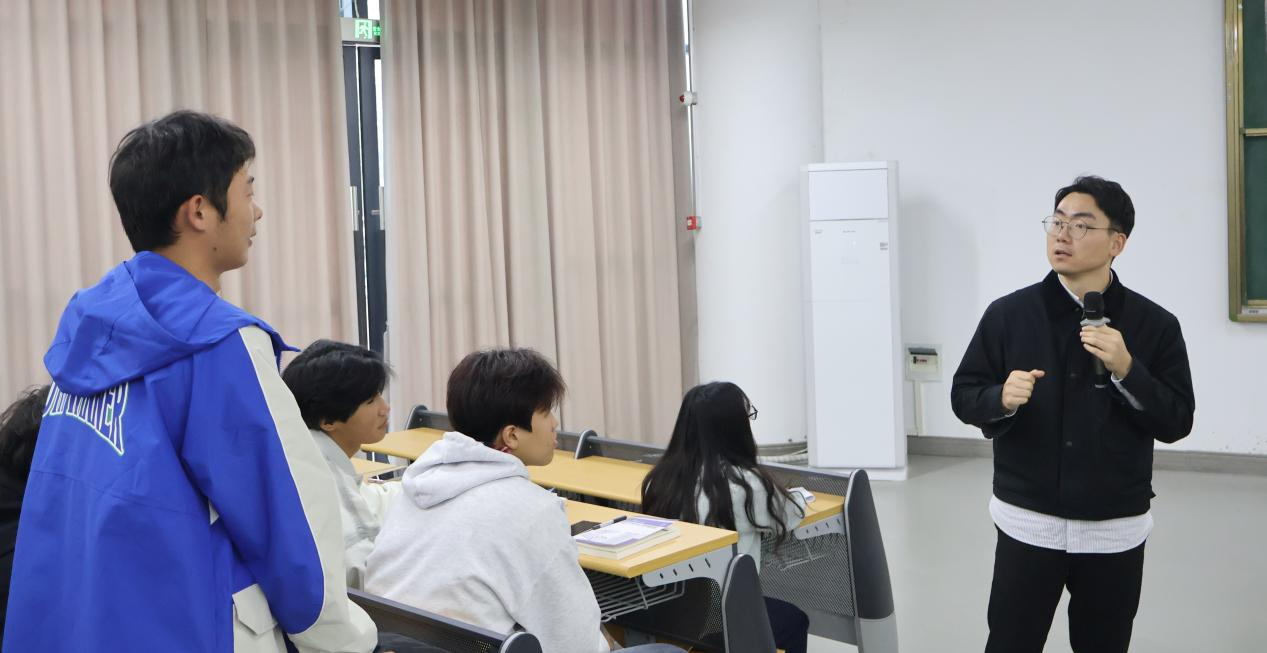 随后,我院王子炎老师以“为什么入党、入党做什么、为党留什么”为核心,为同学们带来了系统且深刻的理论阐释。他结合中国共产党百年发展历程,从“历史必然性”“时代使命性”“个人成长型”三个层面,剖析了青年学生入党的价值意义。入党是一个严肃的政治选择,更是一场需要长期坚守的思想淬炼,同学们要在日常学习生活中主动对标党员标准,在思想上先‘入党’。