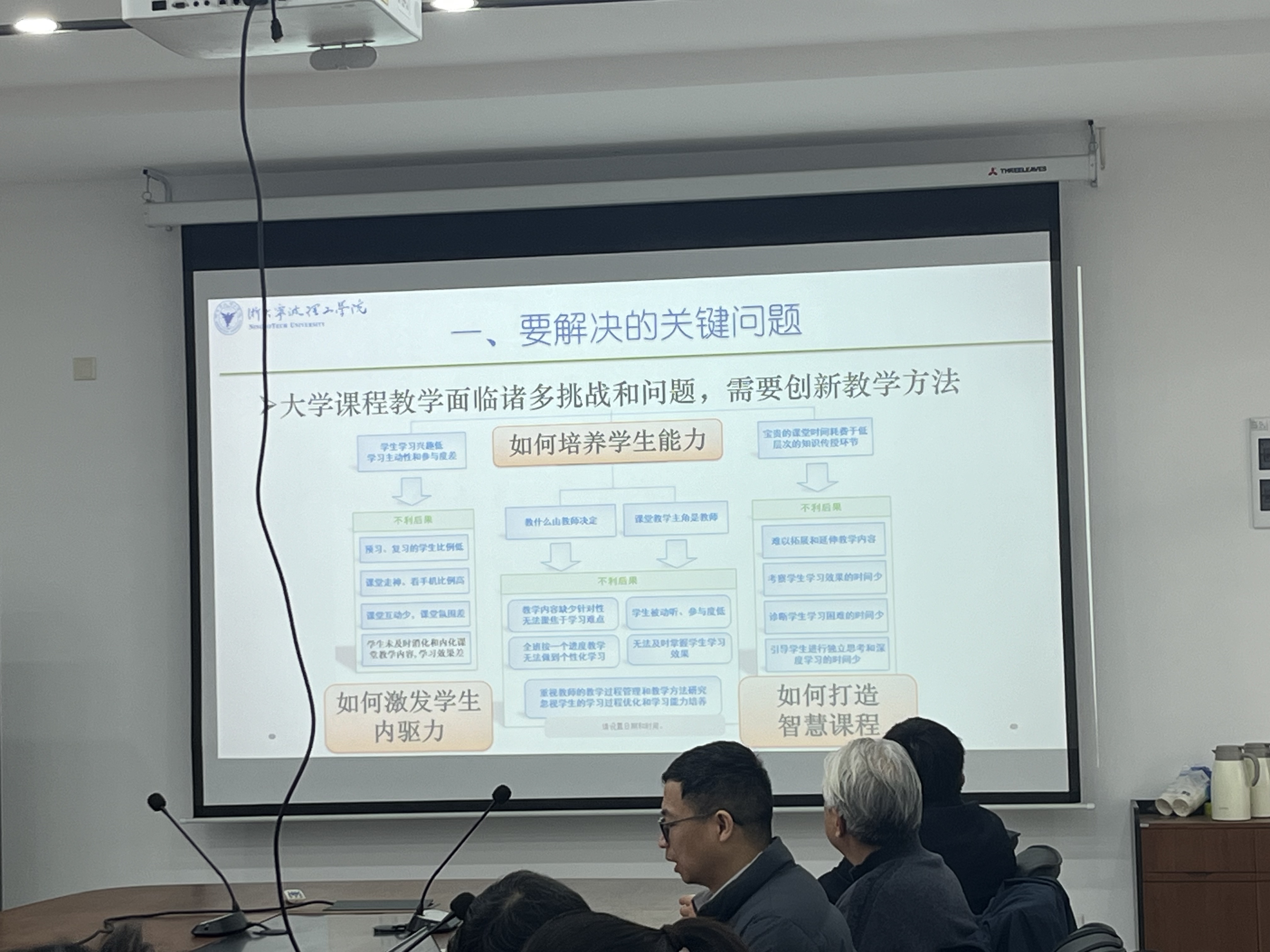 胡升教授结合其主持的省级一流课程建设经验,精准直击当前高校教学面临的核心痛点,即学生内驱力激发、综合能力培养及智慧课堂构建三大难题,并系统阐述了以智慧技术为支撑的教学体系改革路径。他强调,教学模式必须从传统的“以教为中心”向“以学为中心”深度转型,通过构建课前自主导学、课中精准互动、课后多元评价的全链路教学闭环,有效破解学生学习动力不足与个性化教学落地难等现实困境。