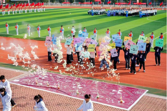 开幕式上,材化筑梦方阵以极具创意的呈现方式惊艳全场。学子们手持化学元素展板,伴随着哈尼宝贝欢快的节拍激情登场灵活变换队形,“大象牙膏实验展演”成为全场焦点,多彩泡沫喷涌而出,宛如绽放的青春之花,既展现了化学学科的神奇魅力,也象征着材化学子蓬勃向上的活力。
