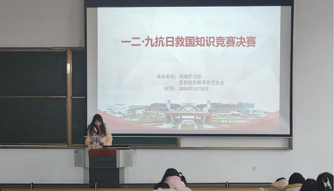 为弘扬爱国主义精神,传承抗日救国运动的优良传统,深化全体学生对抗日战争历史的了解,培养学生的民族自豪感和使命感,我校国旗护卫队和思想政治教育研究协会于2024年12月8号在1号教学楼111室开展“一二·九 ”知识竞赛决赛。