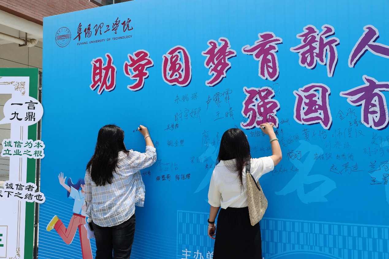 为深入贯彻习近平总书记关于教育的重要论述精神,坚持和加强党对学生资助工作的全面领导,落实立德树人根本任务,深入推进资助育人,增强当代大学生的诚信意识和责任担当,我校于2025年5月14日至17日在学校食堂西门成功举办了“筑梦圆梦育新人,强国有我筑未来”诚信签名活动。