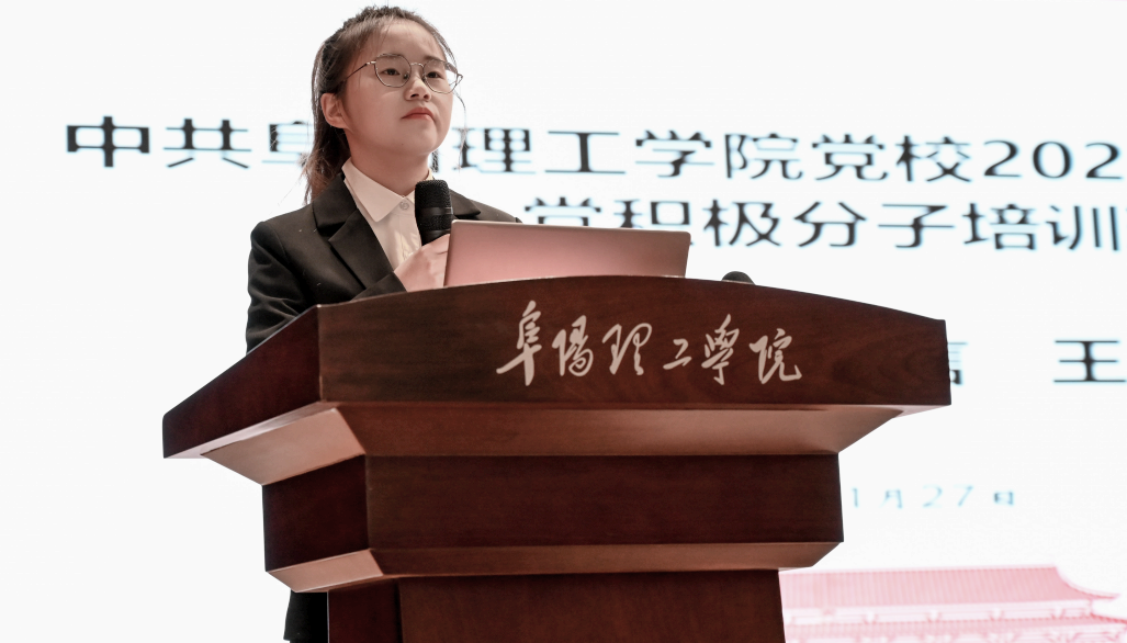 2023级汉语言文学专业王妍同学作为入党积极分子代表发言,她在发言中表达了对党的崇敬与向往之情。她表示,作为新时代的青年,将以党员标准严格要求自己,努力学习专业知识,提高综合素质,积极参与社会实践和志愿服务活动,在学习和生活中发挥模范带头作用。随后,她代表全体学员承诺,将严格遵守培训纪律,认真学习党的历史、章程和基本理论,深刻领会党的二十大以及二十届三中全会精神,不断加深对党的认识和理解,争取早日加入中国共产党。