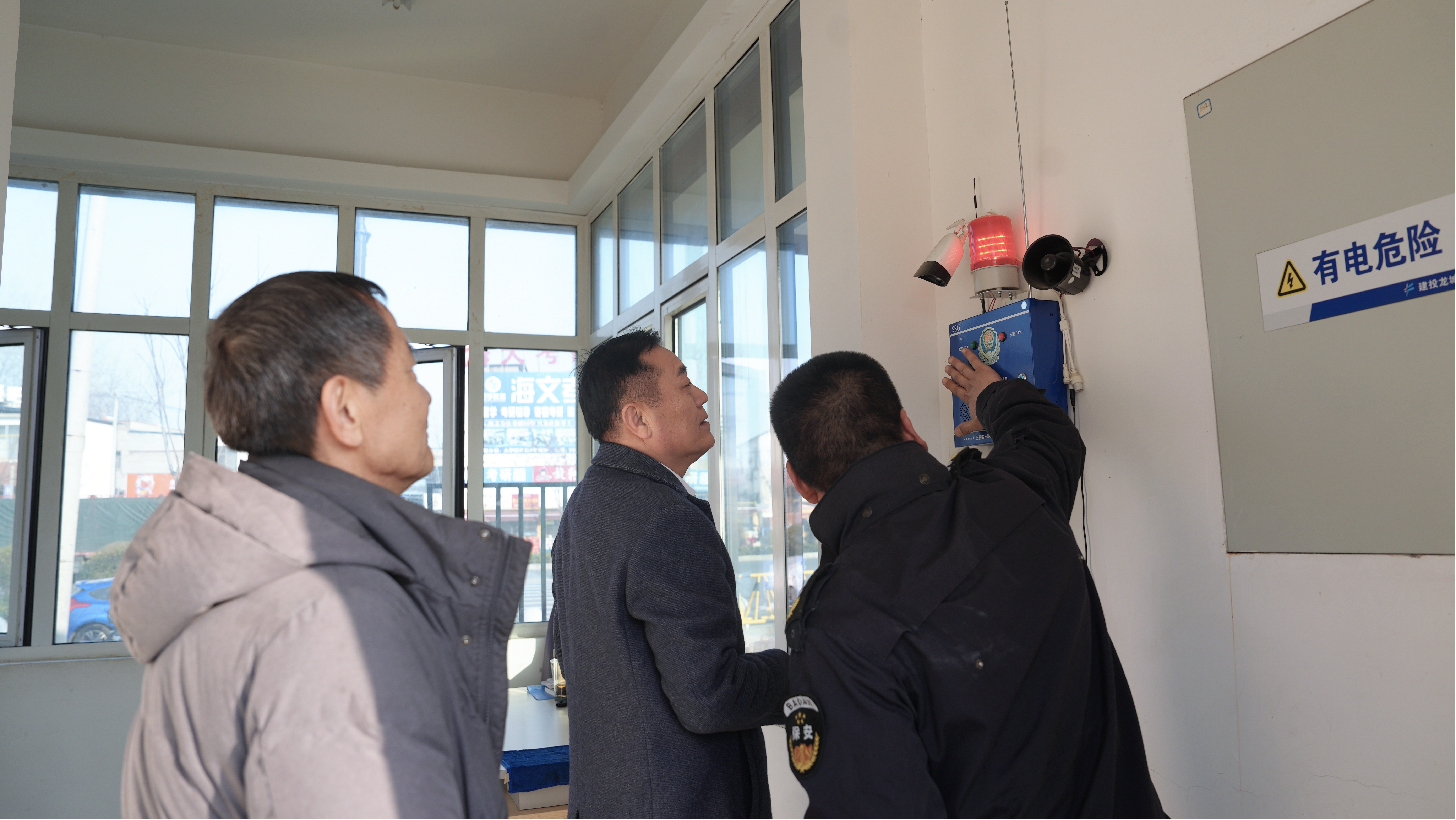刁卫华一行首先来到学校东门,实地查看并试用了东门保安室的一键报警系统,有效检验了其响应速度和操作便捷性,确保在紧急情况下能够迅速响应,保障校园安全稳定。