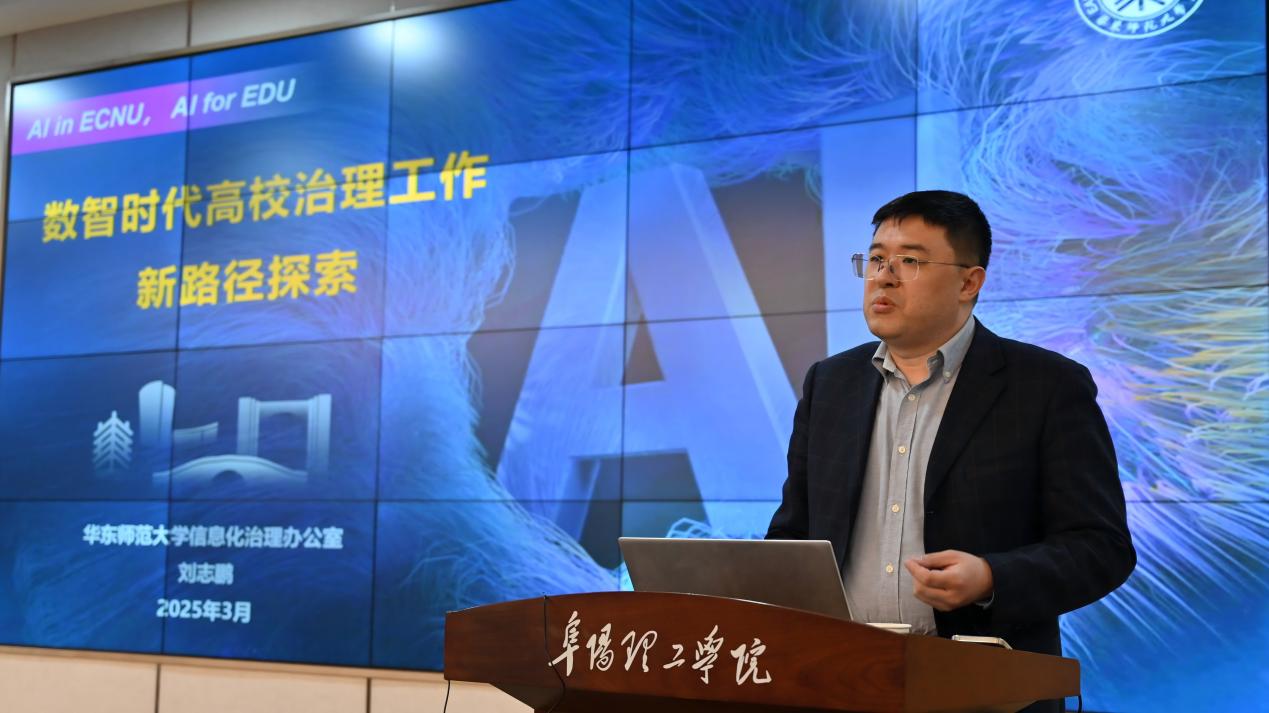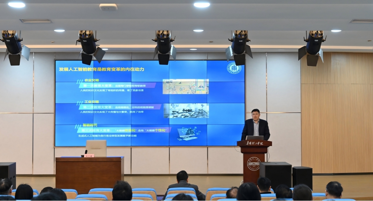 3月28日,为积极响应国家教育数字化战略行动,全面提升我校教职工数字素养与教学能力,我校邀请华东师范大学信息化治理专家刘志鹏在图书馆一楼报告厅作题为《数智时代高校治理工作新路径探索》讲座,学校各单位负责人及全体教职工参加讲座,共同探讨人工智能在高校治理和教育教学上的实践和应用。