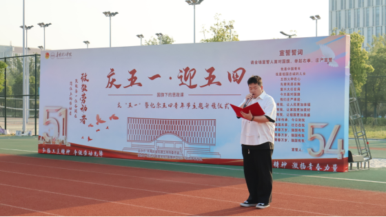 升旗仪式结束后,优秀学生代表经济与管理学院2022级财务管理专业1班吴韵菊同学作国旗下演讲。吴韵菊鼓励同学们,在五四的光芒下,怀抱梦想,脚踏实地;在五一的赞歌中,礼赞劳动,歌唱奋斗;让青春在新时代的广阔天地中奋力奔跑,在中国式现代化的征程上熠熠生辉!