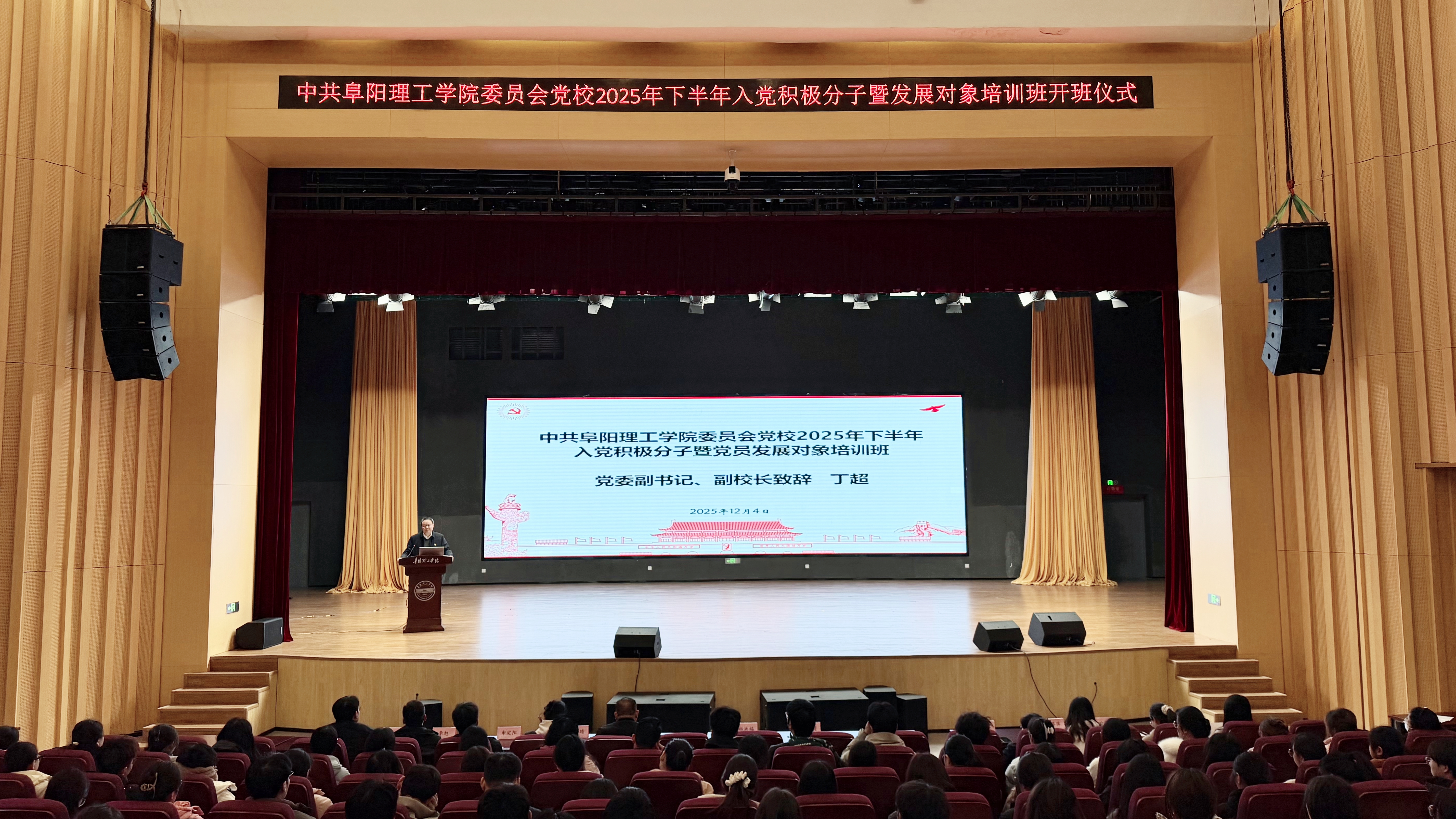 12月4日,学校2025年下半年入党积极分子暨党员发展对象培训班开班仪式在校大学生活动中心礼堂举行。校党委副书记、副校长丁超出席并作动员讲话,校党委委员、党委工作部部长郑洪福主持,各基层党支部书记及225名学员参加。