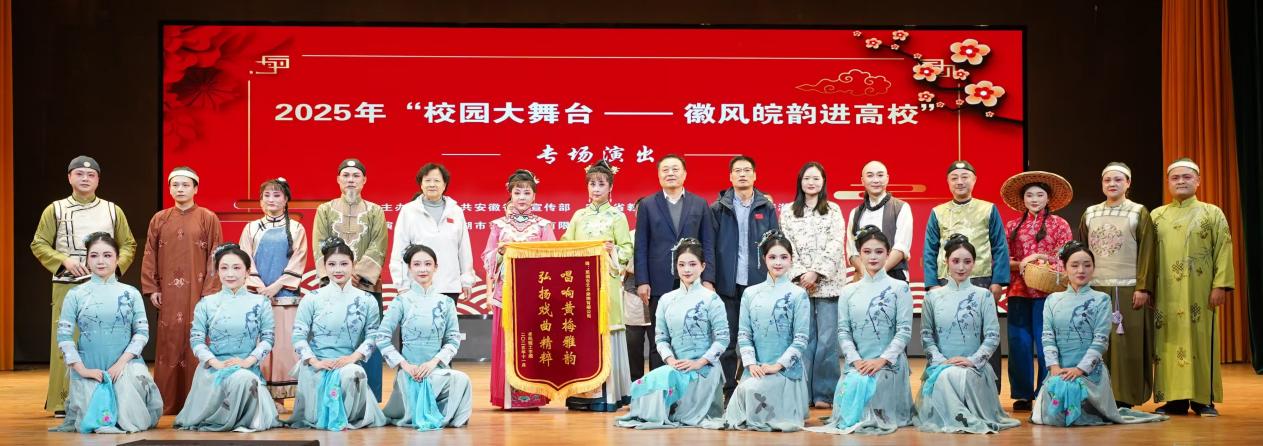 黄梅雅韵润杏坛,理工校园绽芳华。11月25日,由中共安徽省委宣传部、安徽省教育厅、安徽省文化和旅游厅联合主办的2025年“校园大舞台—徽风皖韵进高校”活动在我校大学生活动中心礼堂精彩上演,七百余名师生观看演出,现场气氛热烈。